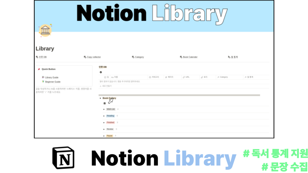 문장수집 & 독서통계를 강조한 노션 독서템플릿