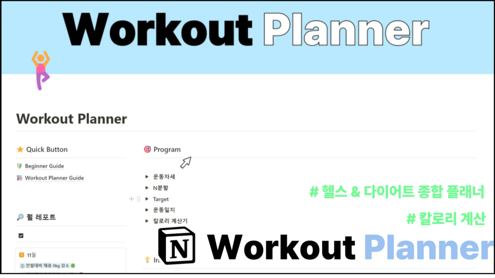변화를 직관적으로 보여주는 다용도 노션 운동플래너